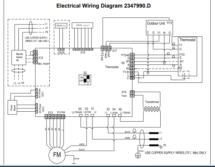 454B UNITS ARE USING A "O" INSTEAD OF THE "B" LIKE THE 410A UNITS. ALSO, NOTICE WIRING DIAGRAM AND PLACEMENT OF LV FROM INDOOR UNIT TO OUTDOOR UNIT, IT LANDS ON DIFFERENT TERMINALS. SEE WIRING DIAGRAM BELOW